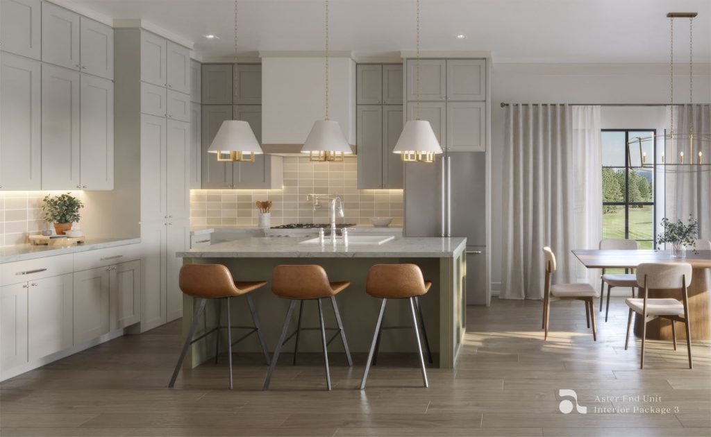 Interior renderings completed for Aster and Vista units, with three courtyard options: